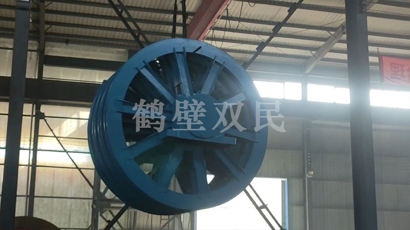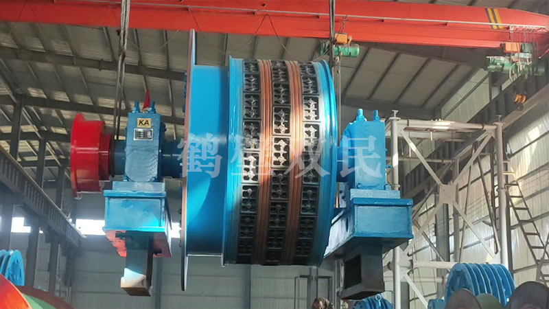這臺多繩摩擦式提升機為,鶴壁市雙民礦機生產的落地式多繩摩擦式提升機,型號為:JKMD-2.8×4PI 多繩摩擦式提升機。