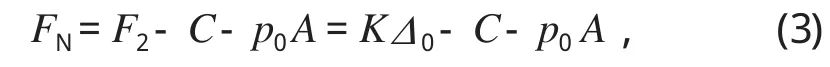 如圖1所示,F1為油壓力,F2為彈簧預壓縮力。顯而易見,盤形制動器是靠油壓力 F1松閘,彈簧預壓縮力 F2制動來實現其功能的。