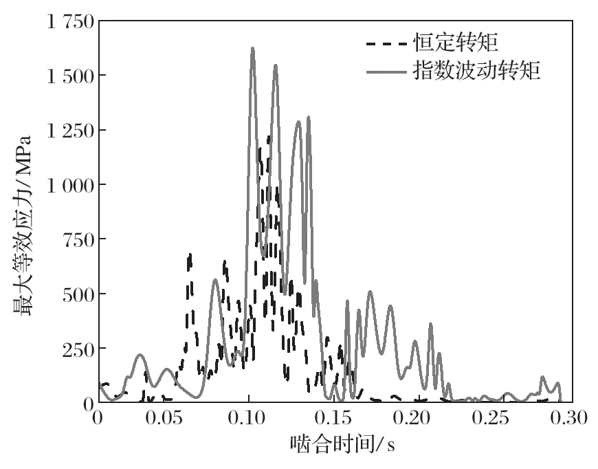 圖14 恒定轉(zhuǎn)矩與指數(shù)波動轉(zhuǎn)矩zui大等效應(yīng)力的對比