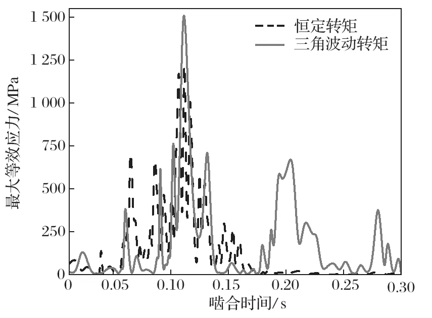 圖13 恒定轉(zhuǎn)矩與三角波動轉(zhuǎn)矩zui大等效應(yīng)力的對比